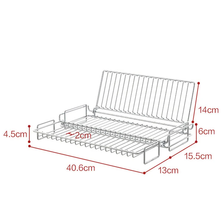 La taille globale est de 40,6 cm/15,98 pouces, la hauteur du corps principal est de 6 cm/2,36 pouces, la hauteur du bord vertical est de 14 cm/5,51 pouces, la largeur de l'extension latérale est de 15,5 cm/6,1 pouces, l'espace de drainage est de 2 cm/0,78 pouces. Cette conception convient à la plupart des éviers domestiques à une ou deux fentes et garantit que l'eau s'écoule rapidement, évitant ainsi l'accumulation d'eau.
